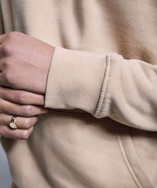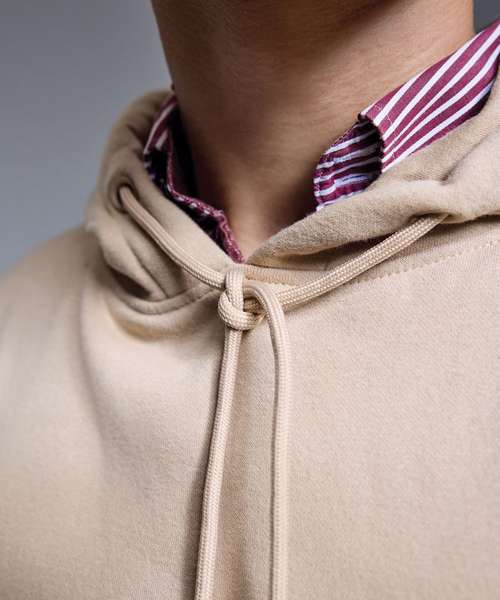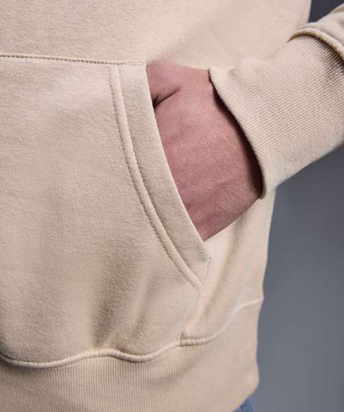 Soft hand feel. Double-fabric hood. Brushed inner fleece. Nickel-free, colour-matched eyelets and drawcord ends. Twin-needle detail. Cut and sew 1x1 ribbed cuffs and hem. Kangaroo pocket. Self-coloured neck size label.