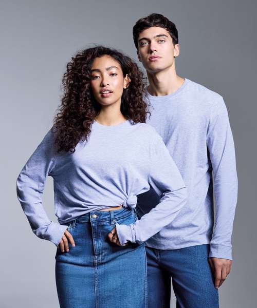 A cool twist on our iconic tee. Long cuffed sleeves counterbalance the ribbed crew neck with a retail fashion fit and soft-feel finish. Fashioned in solid shades of 100% organic cotton, or marls in 60% organic cotton with 40% recycled polyester. All longing to be adorned with your own decoration.