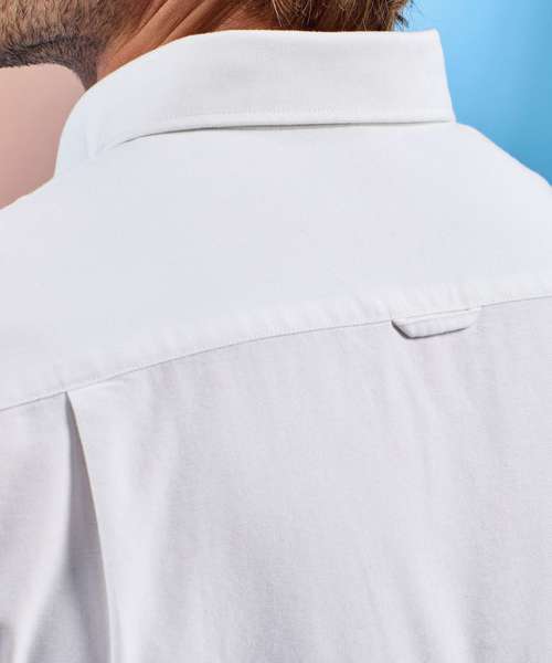Classic fit shirt with two back pleats. 100% cotton. Button-down pointed collar. Long sleeve. Double-button cuffs allow for easy size adjustment.