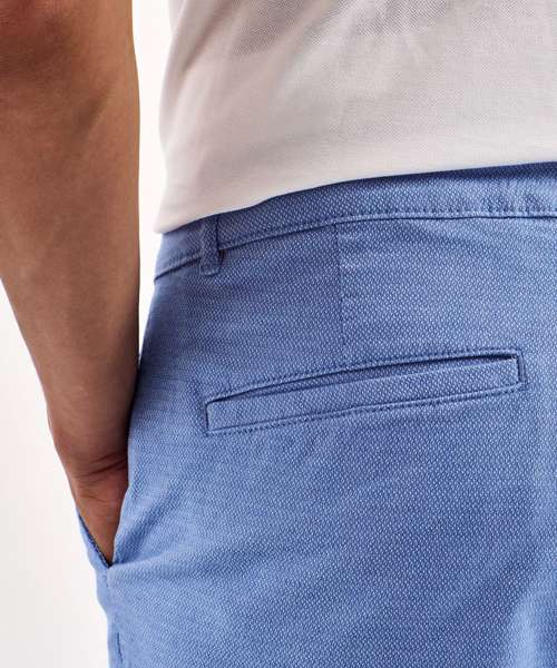 Men’s chino shorts with two swing pockets and two back jet pockets. Zip fly and button fastening to the front. Belt loops. Drawstring detailing.