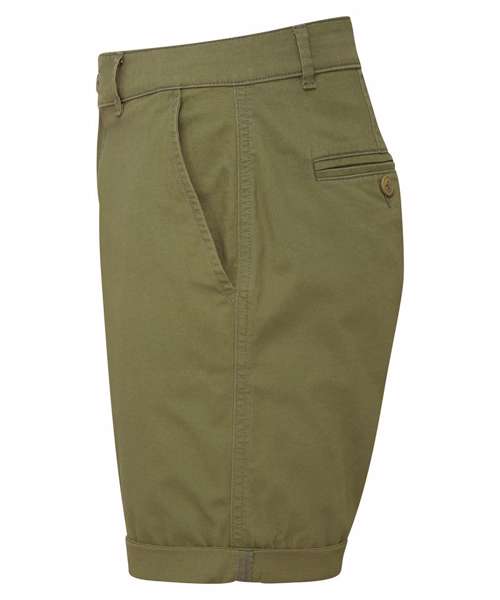 Men’s chino shorts with two swing pockets and two back jet pockets. Zip fly and button fastening to the front. Soft-finish lightweight fabric. Belt loops. Style can be worn rolled up.