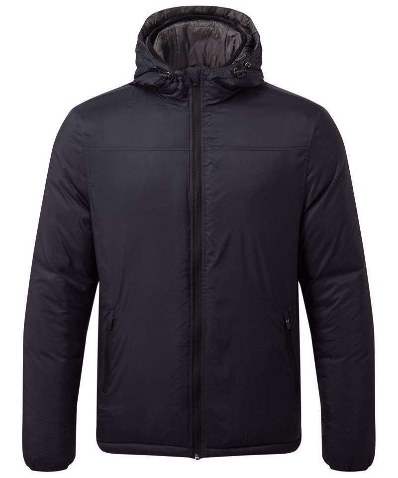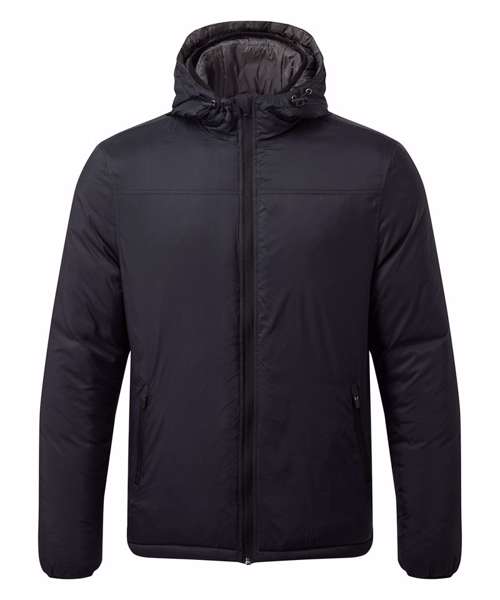 Warm and versatile polyfill padded jacket. Wind resistant. Fully lined unique double hood with adjusters. Full-zip. Two zippered front pockets. Elasticated cuffs.