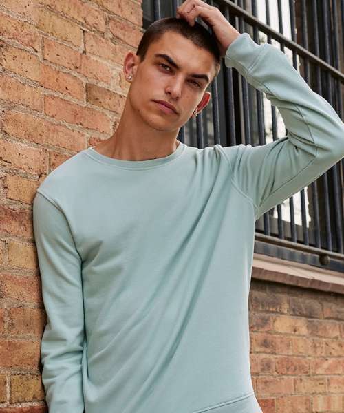 Trendy organic and organic in conversion crew neck sweatshirt. Retail fashion-oriented look and feel. Strong styling with great fit and perfect length. Side seams. Identical colours for men and women. Easy branding – B&C No Label Solution. Inside single Jersey half moon in back. Qualitative herringbone neck tape.