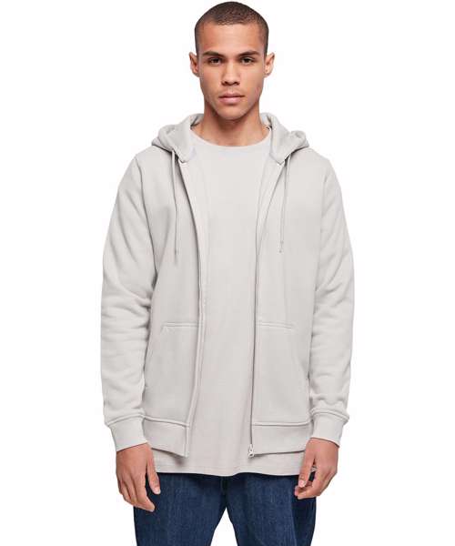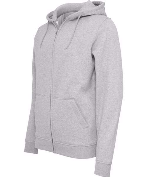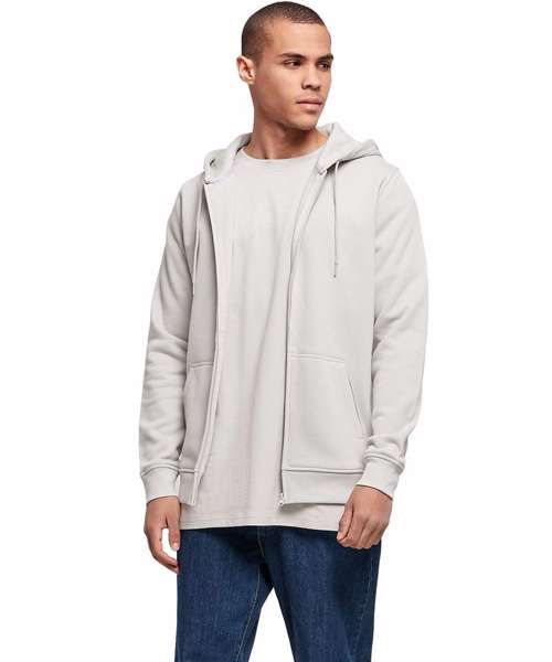 This heavy zip hoody from Build Your Brand offers both a stylish design and remains comfortable due to the inside brushed sweat fabric and the long cut. With two side pockets in a kangaroo pouch style split by a full length zip. Further details include; set-in sleeves, rib cuff at the hem and sleeve, neck half-moon and necktape emphasize the quality of this hoody.