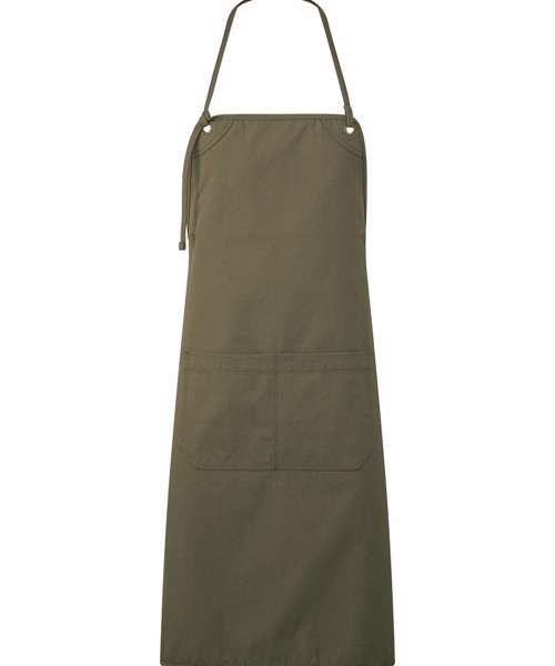 This artisan-inspired apron is designed so it can be worn in bib or waist style. Rounded edges create soft lines, whilst the eyelets provide an ‘industrial-chic’ feel. Adjust the overall height with a knotted neckband and store your essentials in the double centre pocket. The heavyweight canvas is a durable fabric that looks and feels premium, making this the perfect apron for any venue passionate about their trade. Made with certified recycled polyester.