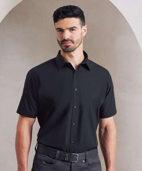 A short sleeved Poplin Shirt offering a heavier weight material for durability. The semi-fitted styling creates a fashionable look, whilst stiffened formal collar looks great when complemented by a plain or patterned tie.
