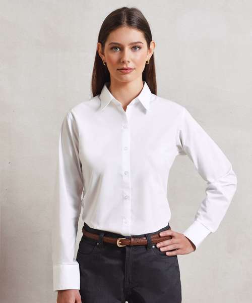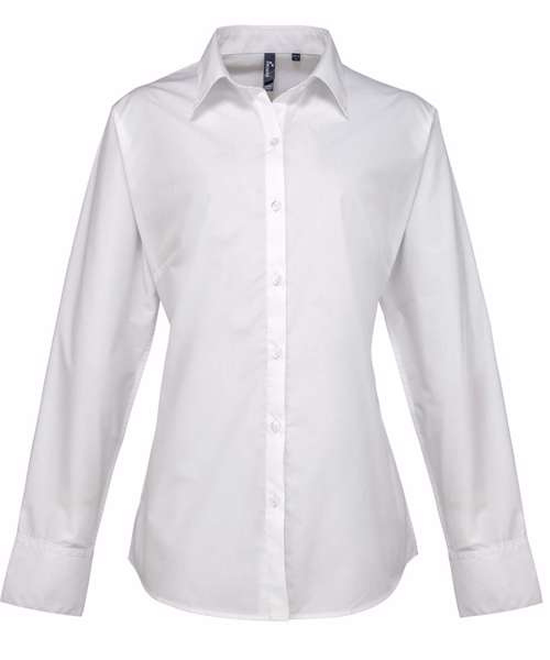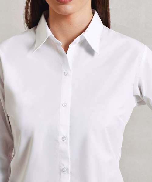 Premier’s long sleeved Supreme Poplin Blouse offers a flattering feminine fit with soft collar detail with bust and back darts giving this blouse a semi fitted appearance. The long sleeves are fastened neatly with a double button cuff. Offering a heavier weight material for durability and finished with a rounded hem.