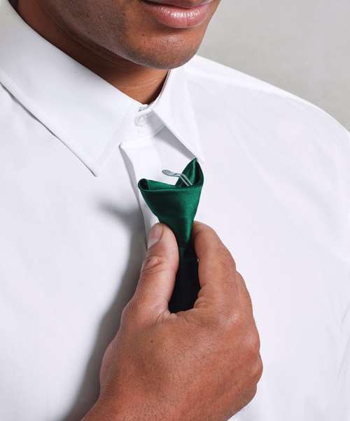 A clip-on tie suitable for those who require a quick and easy application of workwear. Available in 28 colours from Premier's Colours Collection', this tie attaches on to the collar with a steel clip and hangs to a length of 50cm.