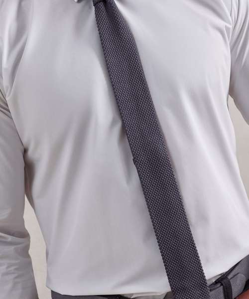 A super trendy tie suitable for work and play! Boasting an extra slim width of just 5cm with a squared off blade finished with a fine-knit stitching. This tie is knitted together with two coloured yarns for a slight contrast effect.