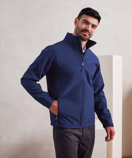 A men’s two-layer softshell jacket carrying Premier’s Windchecker®️ trademark for wind and water resistance through the fabric. Made with 100% certified recycled polyester with a bonded fleece inner layer, this zip-through softshell jacket features hook and loop strips to the cuffs for adjustment around the wrist. There are two handy zipped side pockets and an elasticated drawcord hem for fit. A great versatile outer layer for casual and corporate dressing for men.