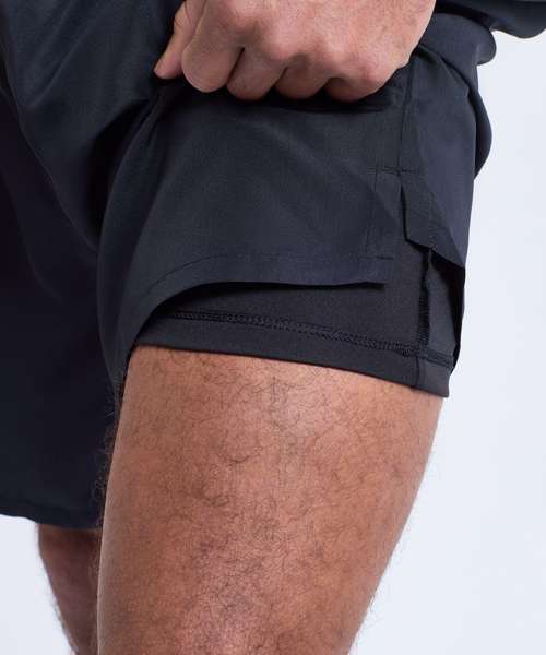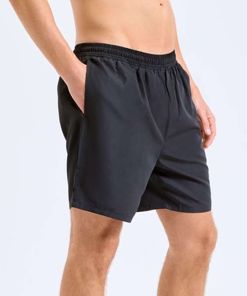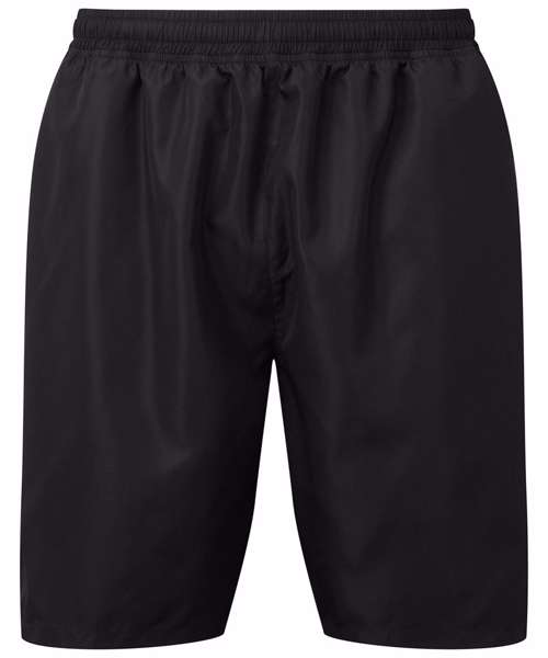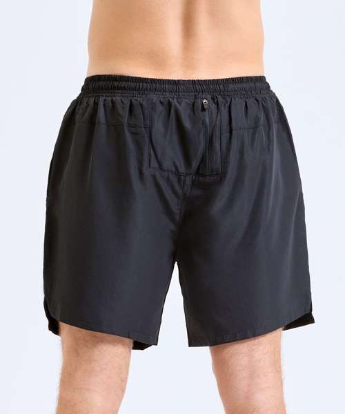 Wicking fabric. Elasticated waist with drawcord inner. Inner liner shorts for support. Mid-thigh length. Lightweight. Zip pocket to back for storing essentials. Two front pockets. Drop hem detailing to front of shorts, whilst a drop hem to the front of the shorts adds a unique twist. Inside leg- 16.5cm. We recommend using block out vinyl and inks.
