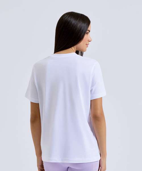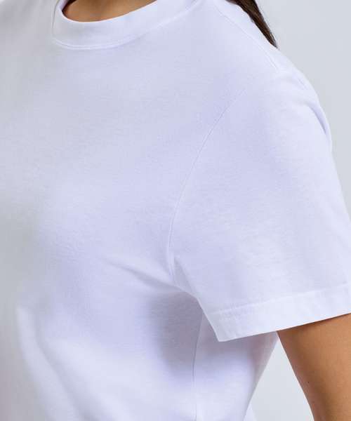 Organic cotton fabric crew neck. Short sleeve. Oversized fit. Twin-needle stitching on hem and arms. Drop shoulders.