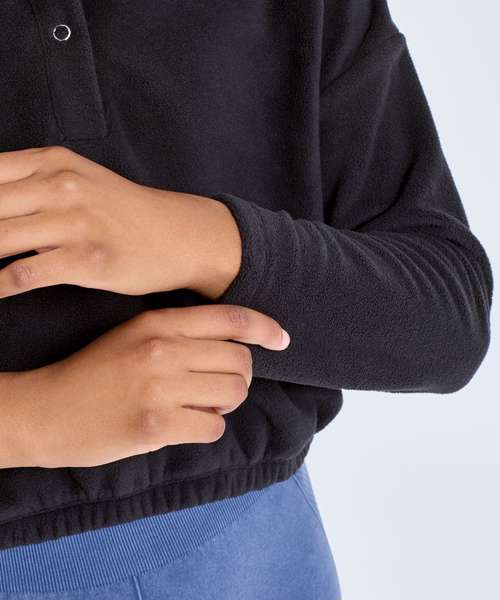 Cropped pull-over fleece with high neck. 1/4 neck popper fastenings to front. Elasticated waistband. We recommend using block out vinyl and inks.