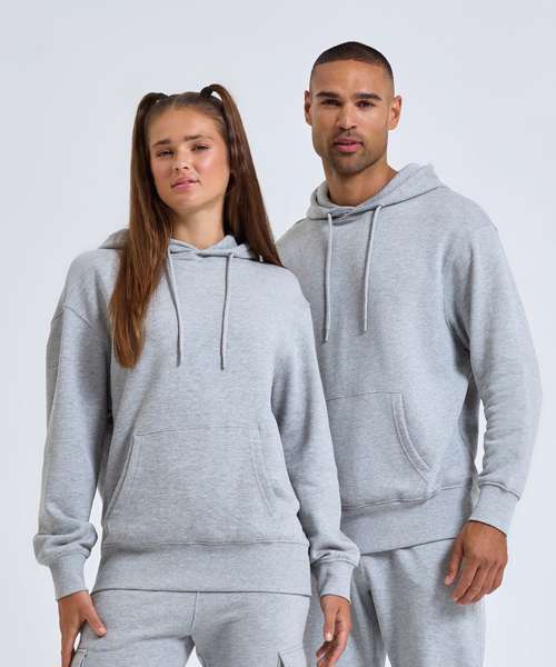 Recycled polyester. Kangaroo pocket. Brushed-back fleece. Ribbed cuffs and hem. Twin-needle detail. Buttonhole stitched eyelets. Cords with painted metal ends. Dropped shoulder design. Unisex fit. Soft feel. Inner brushed fleece. We recommend using block out vinyl and inks.
