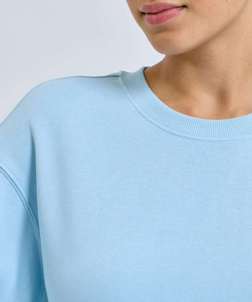 Relaxed fit. Recycled Polyester. Brushed-back fleece inner. Ribbed crew neck. Ribbed cuffs and hem. Twin-needle detail. Dropped shoulder design. Unisex fit. Soft feel. Inner brushed fleece. We recommend using block out vinyl and inks.