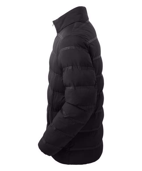 Tonal reverse coil rubberised zip tape and metallic silver teeth on centre front and pockets with signature zip puller. Welded wide baffles. 390gsm polyester fill. Fully-lined in tonal polyester. Streamlined, clean hem and cuffs with internal elastic. Internal zipped opening on back panel for embroidery access. Product contains no branded neck label.* Removable Kimble or looped garment tags. Inner seam label holds important product information on one label with a second label containing brand information which can be cut-away.