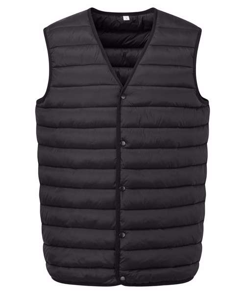 Press stud fastening. Horizontal sandwiched baffles on front and back body, Internal binding on all seams. Stretch binding around edges, cuffs and hem for added protection. Internal pockets. . Product contains no branded neck label.* Removable Kimble or looped garment tags. Inner seam label holds important product information on one label with a second label containing brand information which can be cut-away.