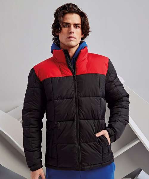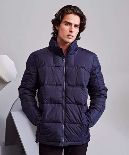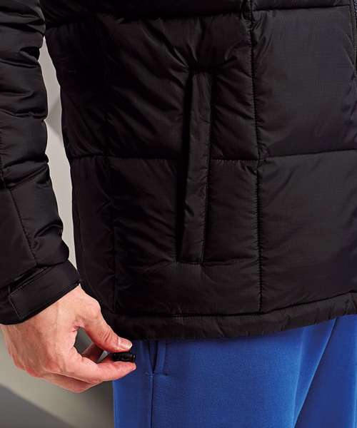 Padded jacket. Full-length zip with padded collar for warmth. Two zipped side pockets. Sleeves have adjustable hook and loop cuffs. Hemline has two adjustable cord toggles. One inner pocket and embroidery access to left chest. Showerproof. Product contains no branded neck label. Removable Kimble or looped garment tags. Inner seam label holds important product information on one label, with a second label containing brand information which can be cut away.